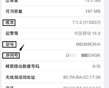 4、最后在打開的頁(yè)面中,這里可以查看到自己iPad的版本序列號(hào)以及型號(hào)信息,如下圖所示就完成了。