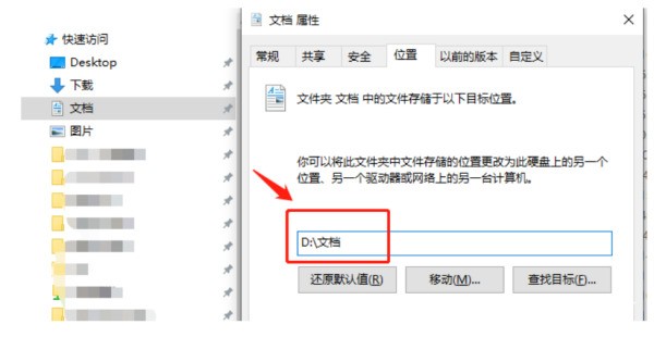 方法:以【文檔】舉例,點擊右鍵選擇【屬性】,打開屬性對話框;直接在這里進(jìn)行路徑變更即可。