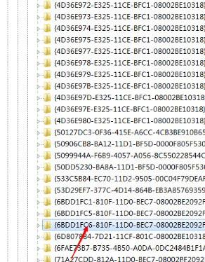 3.進入注冊表,定位到【HKEY_LOCAL_MACHINESYSTEMCurrentControlSetControlClass{6BDD1FC6-810F-11D0-BEC7-08002BE2092F}】項下