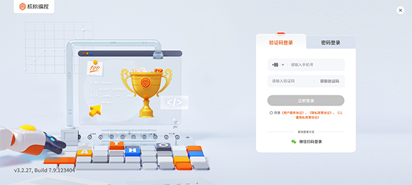 1、打開核桃編程App,選擇一種方式登錄
